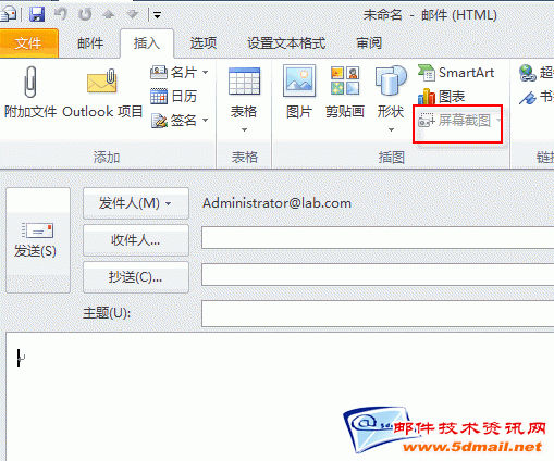 10.重启Outlook 2010后,你将发现“屏幕剪辑”功能已变成了灰色,不能使用。